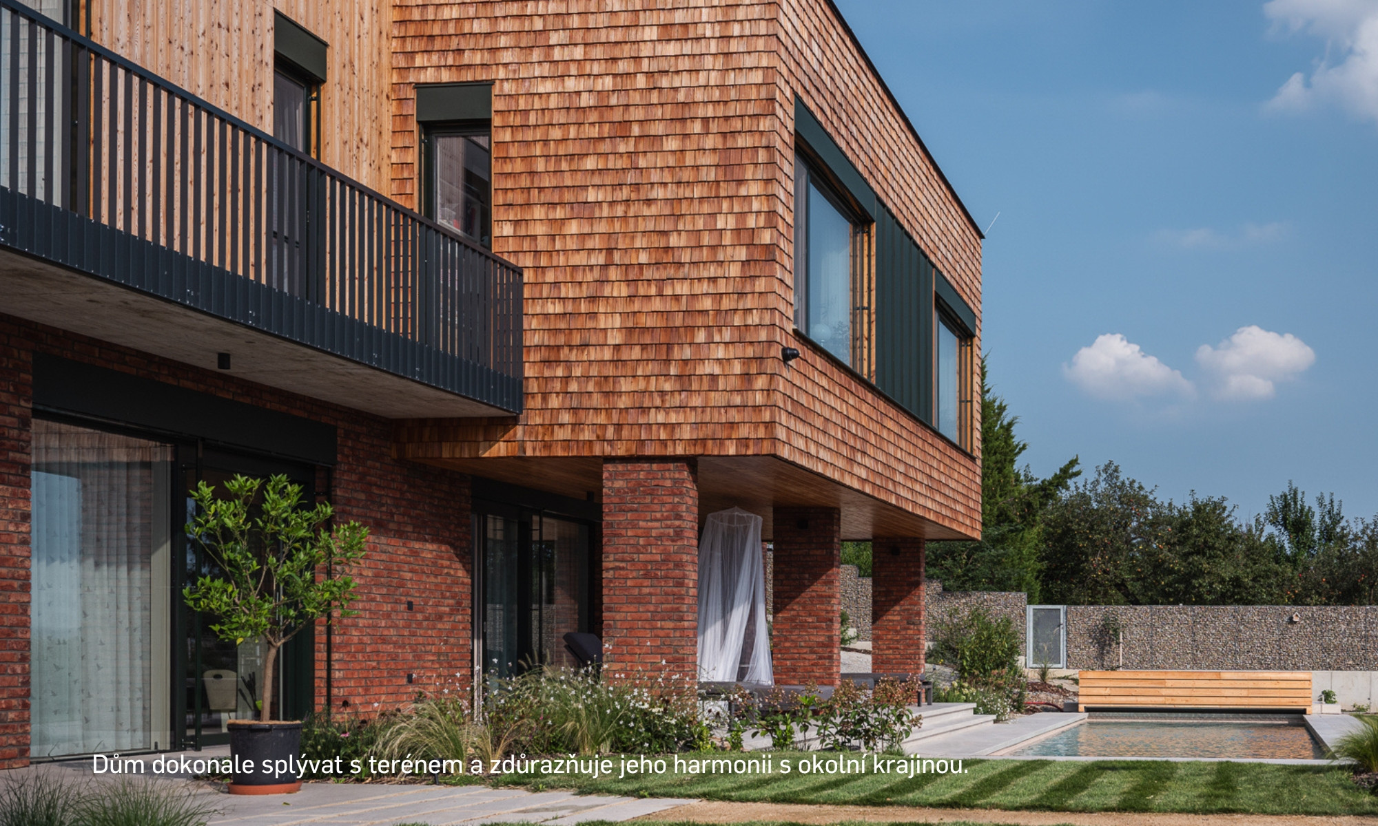 Tato vila nabízí okouzlující výhled na Brno a její jedinečnost spočívá v použití tří rozdílných architektonických hmot, které se elegantně prolínají a odlišují fasádními materiály: ◾️ modřínová prkna, dřevěný šindel a cihlový obklad. ◾️Tyto odlišné struktury společně vytvářejí vizuální dynamiku a umělecký kontrast, který je nejen funkční, ale i esteticky oslnivý. ◾️Dispozičně je vila fascinující svým nenápadným vzhledem ze strany ulice, kde se nachází praktické parkovací plochy. ◾️Avšak směrem do zahrady se vila zcela otevírá. ◾️Velká prosklená fasáda umožňuje plynulé propojení interiéru s exteriérem, čímž obyvatelům poskytuje pocit svobody a soukromí. ◾️Obytný suterén plynule navazuje na zahradu, kde se nachází bazén, což je ideální místo pro relaxaci a zábavu. ◾️ Interiér vily je pečlivě navržen s důrazem na detaily, které odrážejí životní styl obyvatel. ◾️Světlík nad schodištěm přináší přirozené světlo do centrální části domu, vytváří příjemnou atmosféru a podtrhuje propojenost všech prostor. ◾️Použití přírodních materiálů a sofistikovaného designu vytváří harmonické prostředí, které je jak estetické, tak funkční.