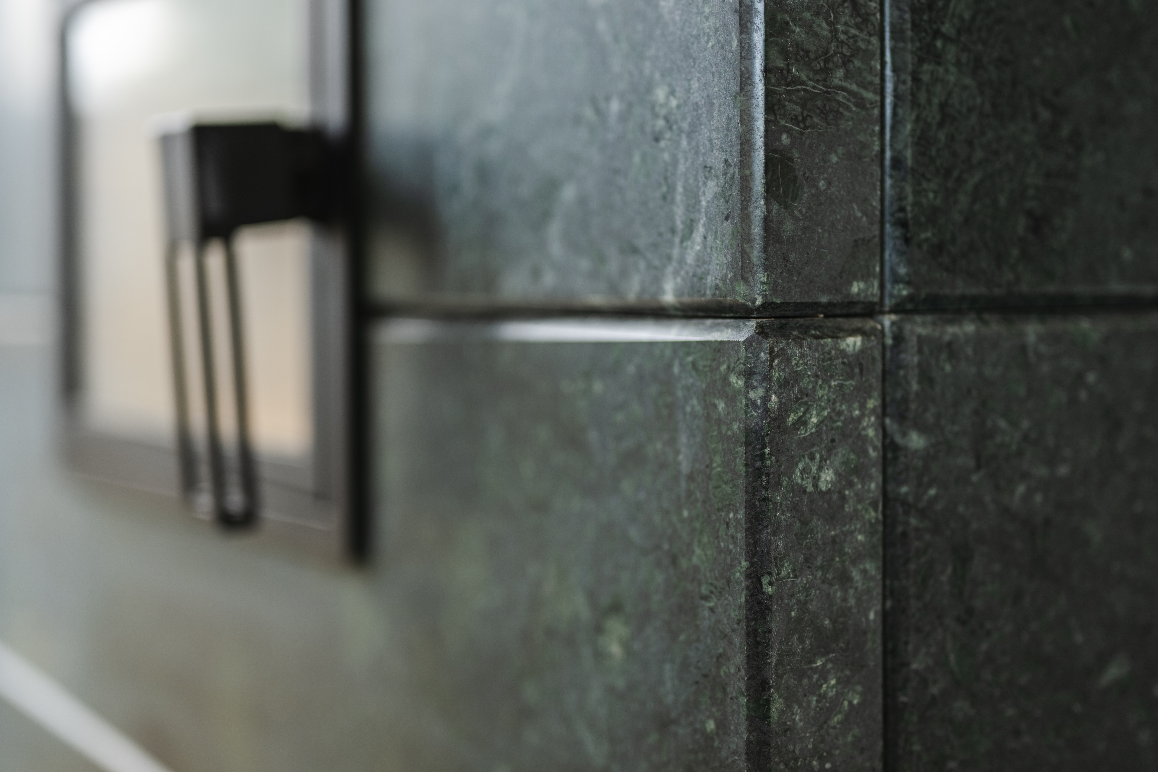 Blocks of soapstone travel in shipping containers to the Czech Republic, where they undergo hand finishing: cutting, grinding and final assembly. Every installation is precise manual work. "We deliver more than a tonne of soapstone material to our clients – precisely cut pieces that are assembled on site. It's like building with Lego, and it takes at least two to three working days," Šopík explains. Every piece of soapstone is unique – the colour and structure of the stone depend on the specific geological vein. The stoves are not just a heat source, but a standalone interior object with its own distinct character.