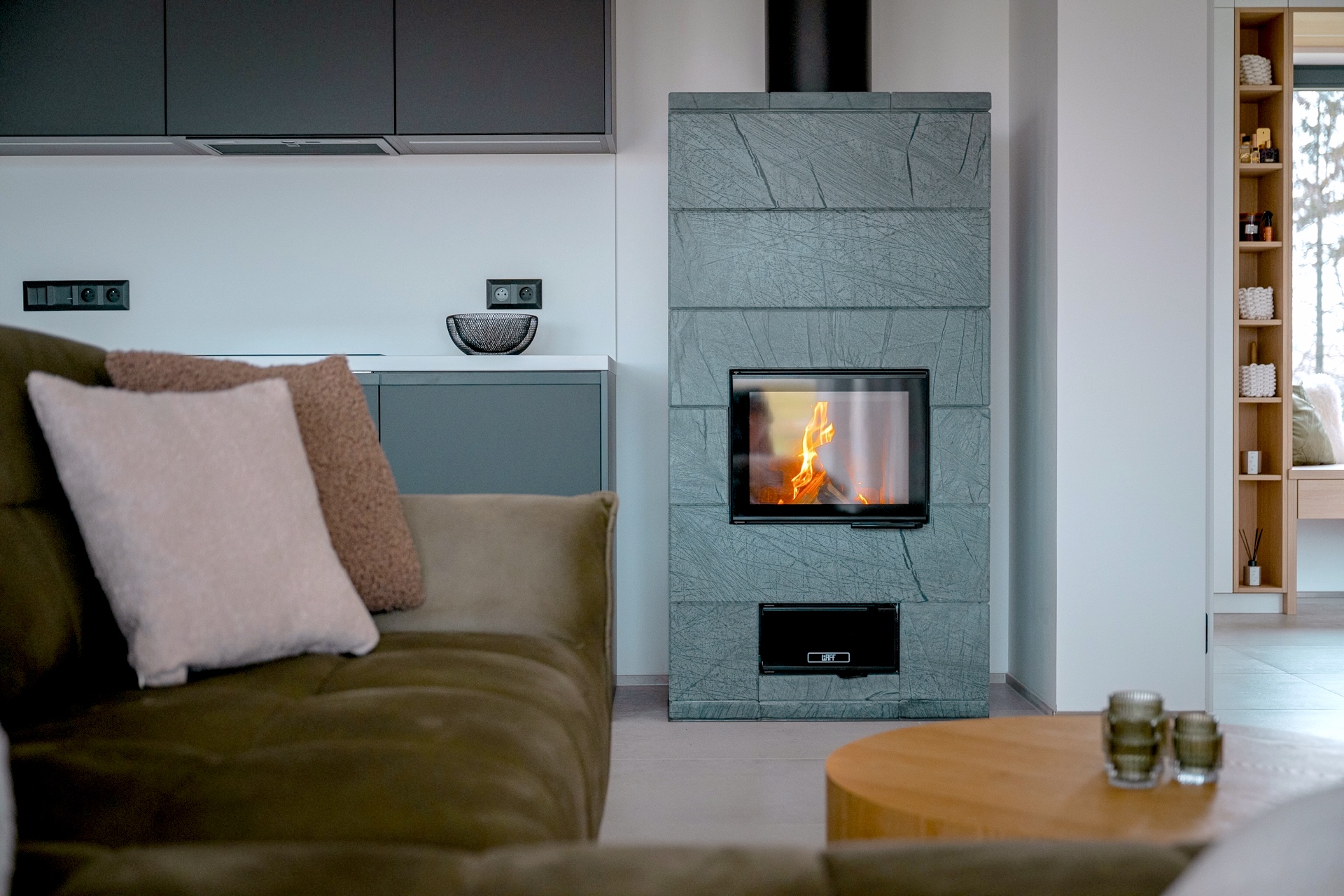 Until then, he only knew soapstone from textbooks – the softest mineral on the Mohs hardness scale. But in Norwegian passive homes, it revealed a completely different role: a perfect heat accumulator for low-energy buildings. Soapstone accumulation stoves work differently from what we are used to in Central Europe. You fire them briefly and intensively, the stove accumulates the heat and then releases it evenly for dozens of hours – without overheating, without temperature fluctuations.